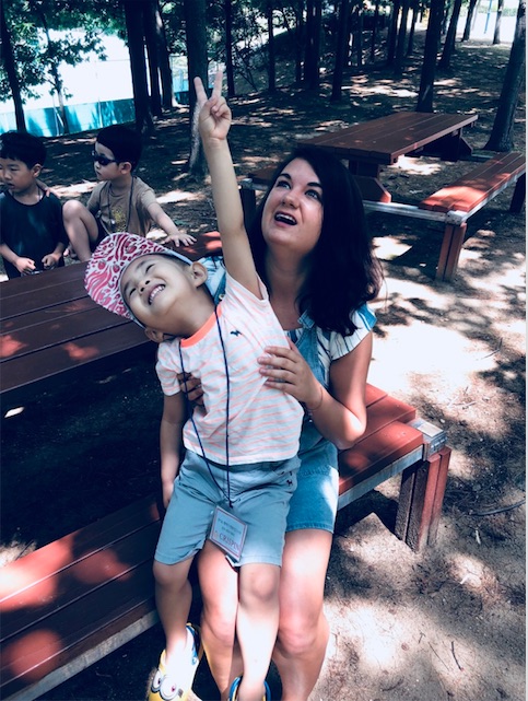 I would have to say that one of the best things as a new teacher to see is when you have a child who has been struggling a little with a word or pronunciation, tackle that word and do it with confidence and a smile. Kids need praise from adults with these victories, they need to know that they are doing great! Aside from that, getting to swim with the kiddos this last month during these hot days in Korea has been so much fun. They love kicking and splashing around in the water with their teachers and friends! So much joy comes from learning English in fun ways, having the kids tell us they are “swimming like fish.”