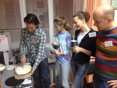 I also teach teenagers and adults. As a rule, each group usually consists of several teenagers. Our students not only study in a group, but also socialise outside of classes. The group starts and finishes the learning process with the same composition of members. It happens due to the fact that we introduce an element of personal growth for each member. Students become so close to each other that they continue communicating out of the class. Once, as is our tradition to celebrate birthdays, one of the students brought a homemade banoffee pie to celebrate with his classmates.
